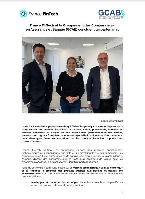 Finance FinTech et le groupement des comparateurs en Assurances et Banque concluent un partenariat