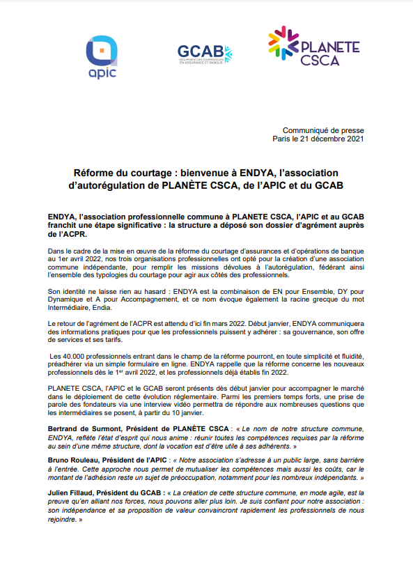 Réforme du courtage : bienvenue à ENDYA, l’association