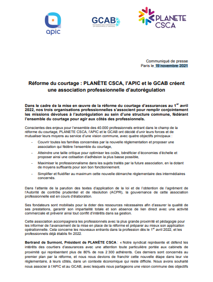 Réforme du courtage : PLANÈTE CSCA, l’APIC et le GCAB créent